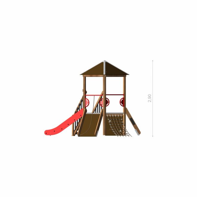 Six Angle w/ Stairs & Slide (H90) wooden playhouse - Eestvaade