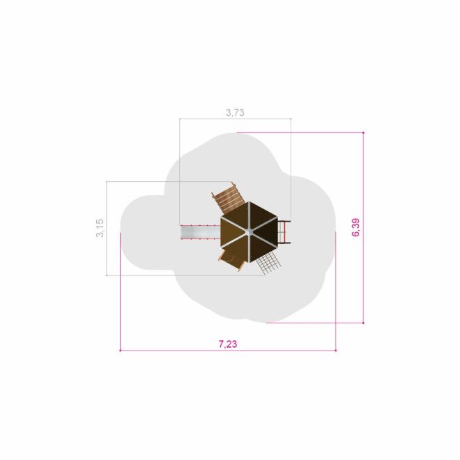 Six Angle w/ Stairs & Slide (H90) wooden playhouse - Pealtvaade