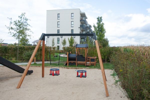 Double Baby Swing on spetsiaalselt loodud pisikestele lastele alates ühest eluaastast, pakkudes neile turvalist ja rõõmsat mängukogemust värskes õhus.