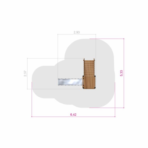 Toode on valmistatud kvaliteetsest lehisepuust, vastupidavast roostevabast terasest ning keskkonnasõbralikust taaskasutatud HDPE ja PE materjalist. See kombinatsioon tagab vastupidavuse, ilmastikukindluse ja minimaalse hooldusvajaduse, säilitades samal ajal mänguväljaku naturaalse ilme.