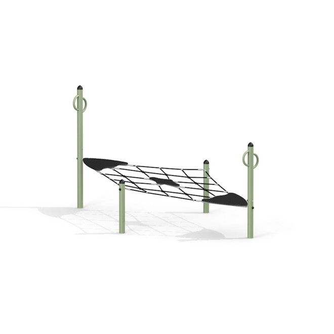 Toode on valmistatud pulbervärvitud terasest, mis tagab korrosioonikindluse ja pikaajalise vastupidavuse. Tugevdatud PP köis koos roostevabast terasest kettidega loob turvalise ja stabiilse ronimisvõrgu. Ecogrip ja kumm lisavad haarduvust ning mugavust, muutes mängukogemuse veelgi nauditavamaks.